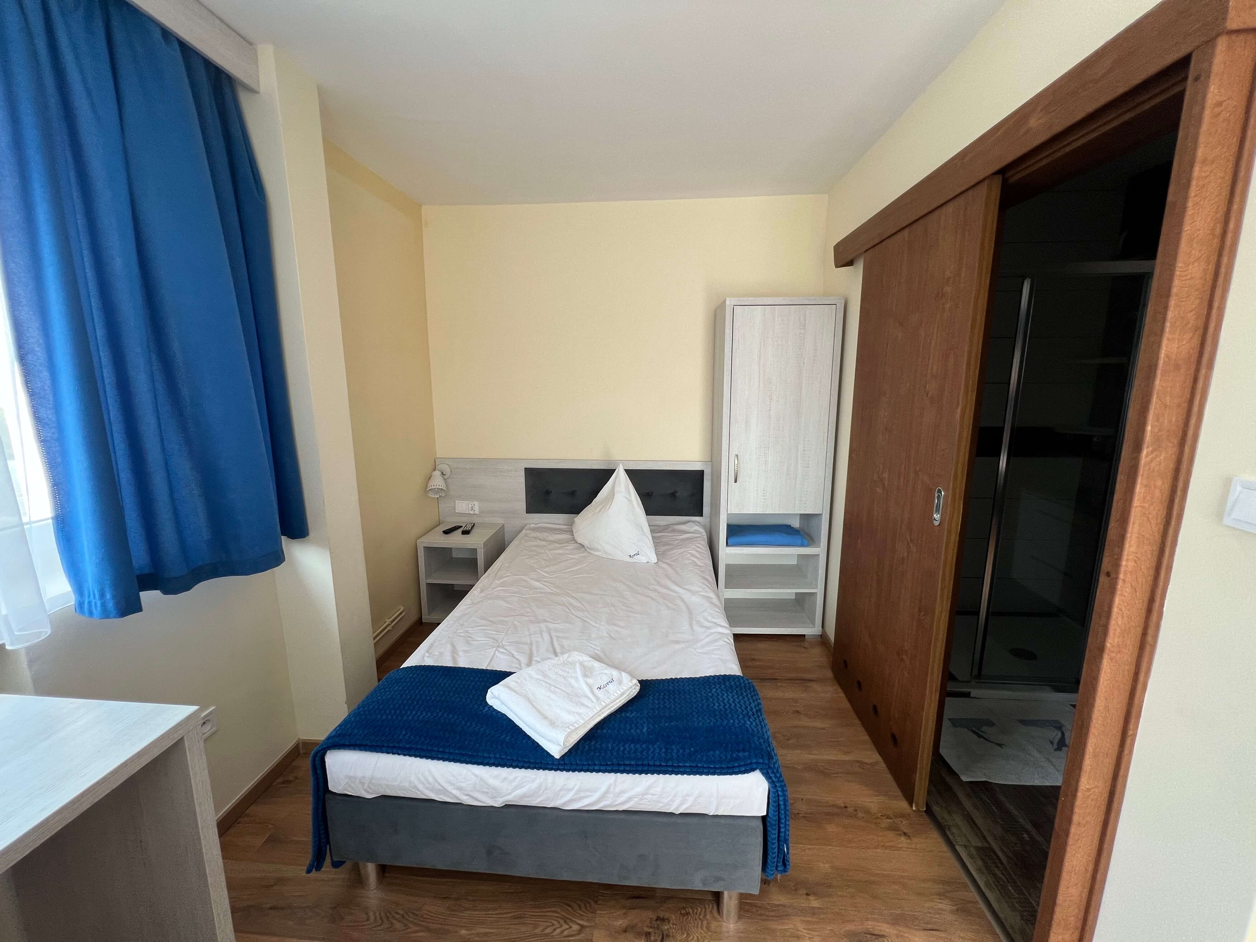 Pokój 2-3 osobowy z balkonem Powierzchnia: 14m2 + łazienka Balkon: tak 1 miejsce parkingowe Pełne wyżywienie w cenie Wi-Fi na terenie całego ośrodka Telewizor z kanałami satelitarnymi Łóżka: łoże małżeńskie (140cm), tapczan (80cm) Pokój: 3/I piętro, 4/I piętro Cena:* 2 osoby - 730zł 3 osoby - 790zł * cena za jedną dobę, obowiązuje dla pobytu 7-dniowego. Powyższe ceny nie uwzględniają opłaty klimatycznej.