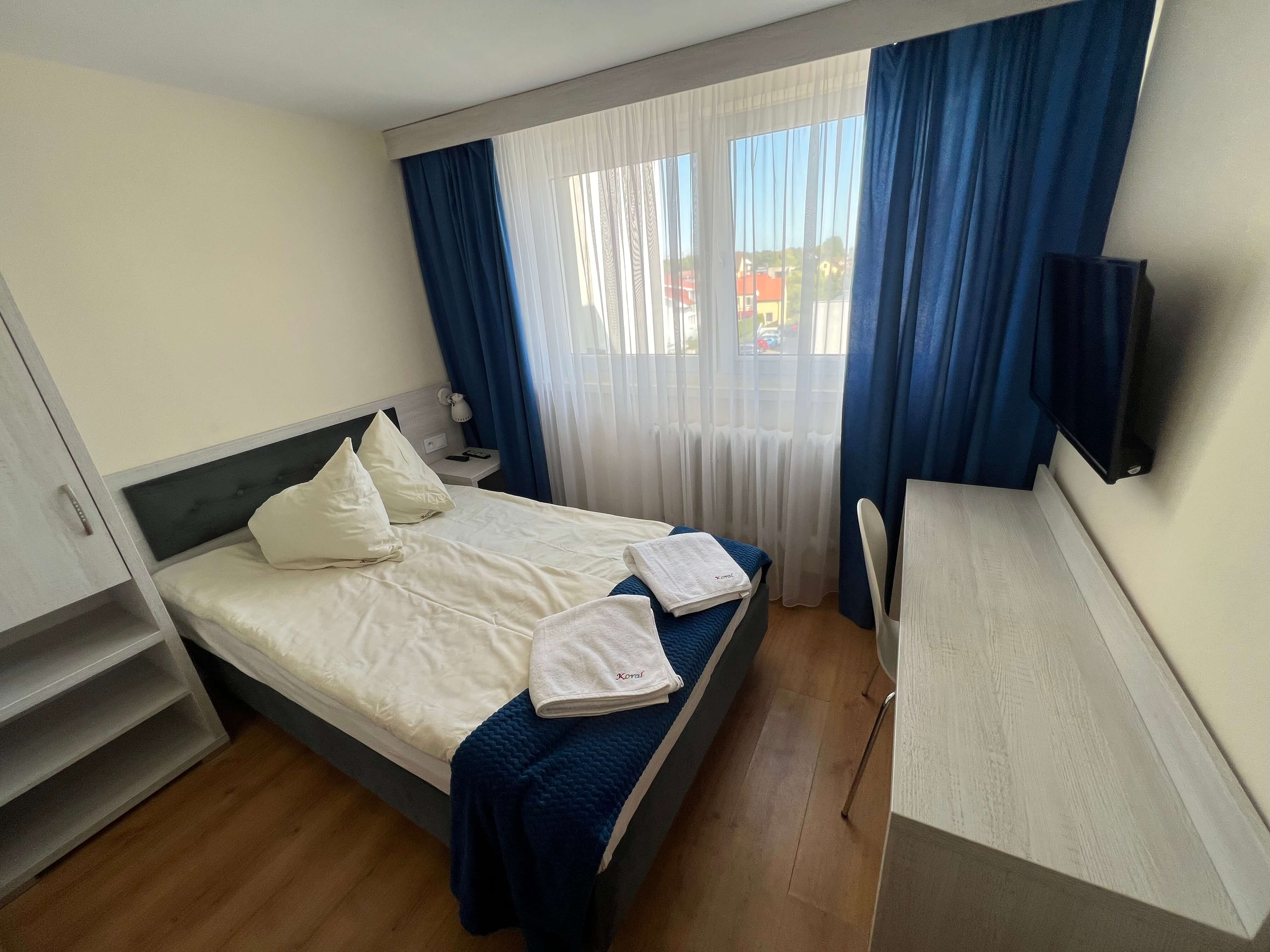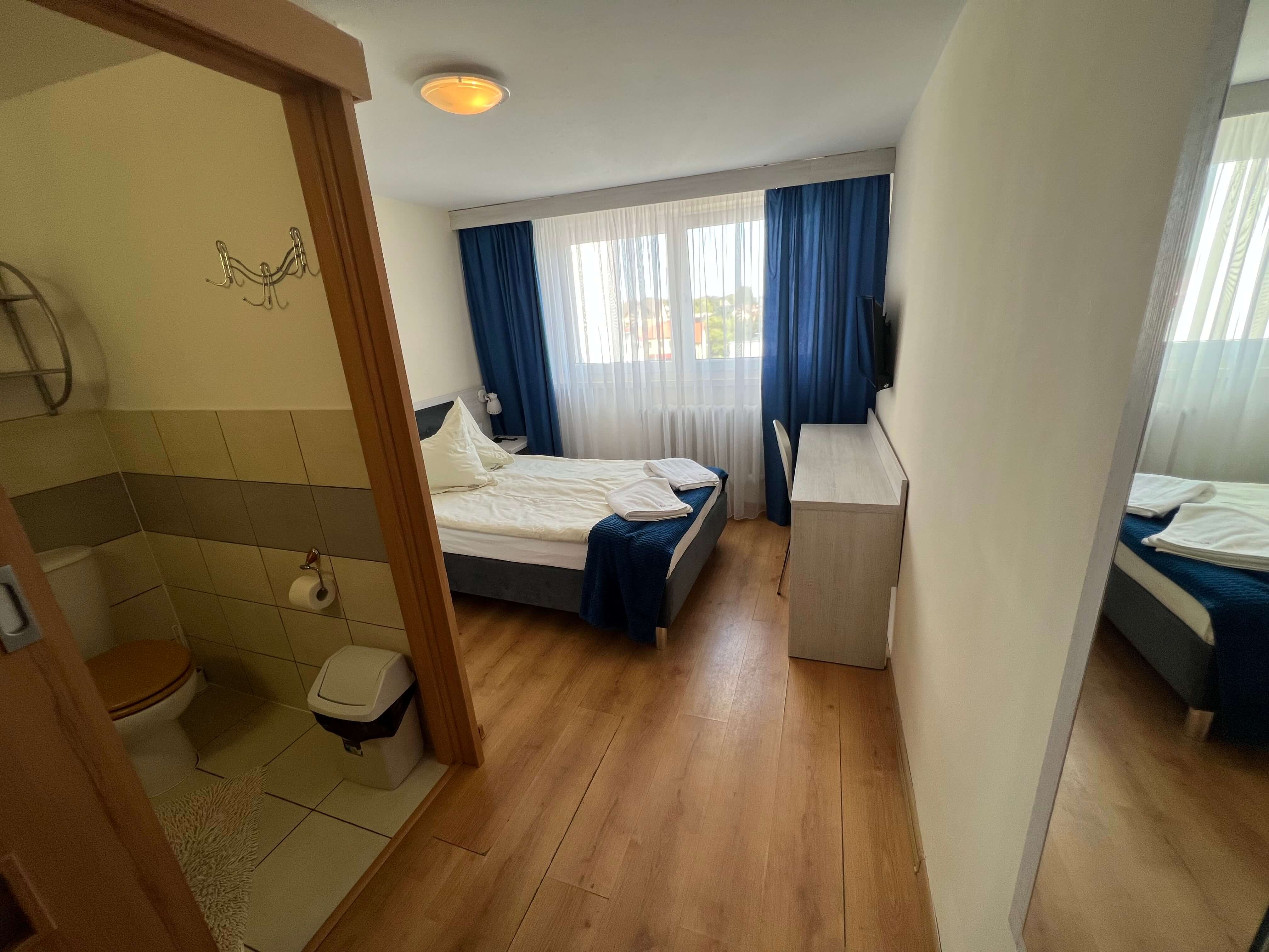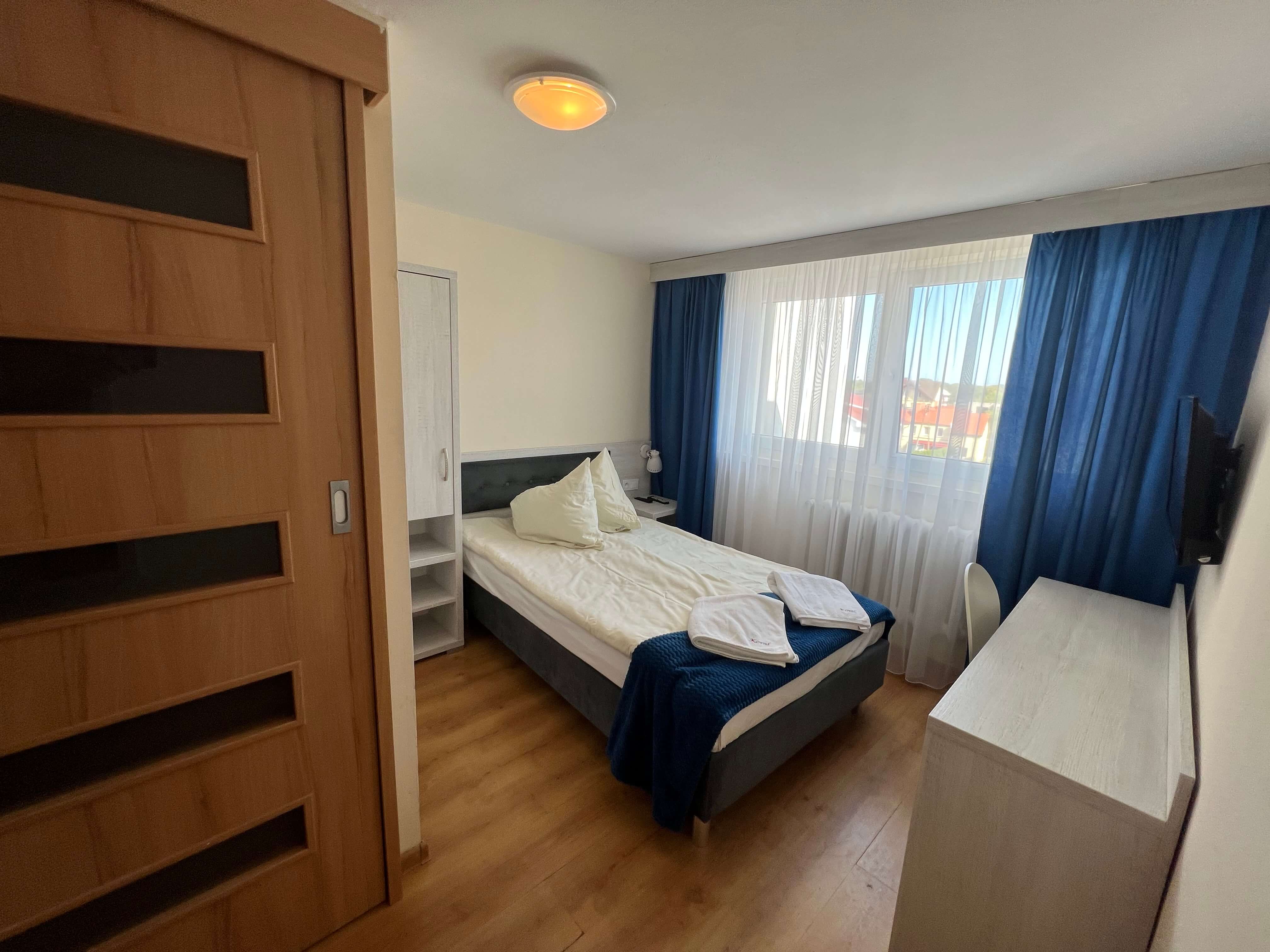 Pokój 2 osobowy bez balkonu Powierzchnia: 10m2 + łazienka Balkon: nie Pełne wyżywienie w cenie Wi-Fi na terenie całego obiektu Telewizor z kanałami satelitarnymi Łóżka: wersalka (120cm szerokości) Pokoje: 8/II piętro, 17/III piętro Cena:* 640zł * cena za jedną dobę, obowiązuje dla pobytu 7-dniowego. Powyższe ceny nie uwzględniają opłaty klimatycznej.